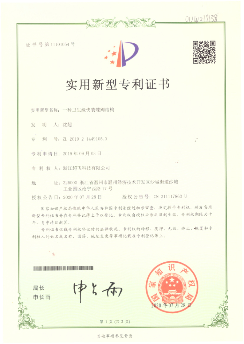 實(shí)用新型專(zhuān)利證書(shū)