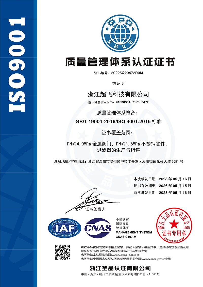 質(zhì)量管理體系認(rèn)證證書(shū)中文Q帶標(biāo)